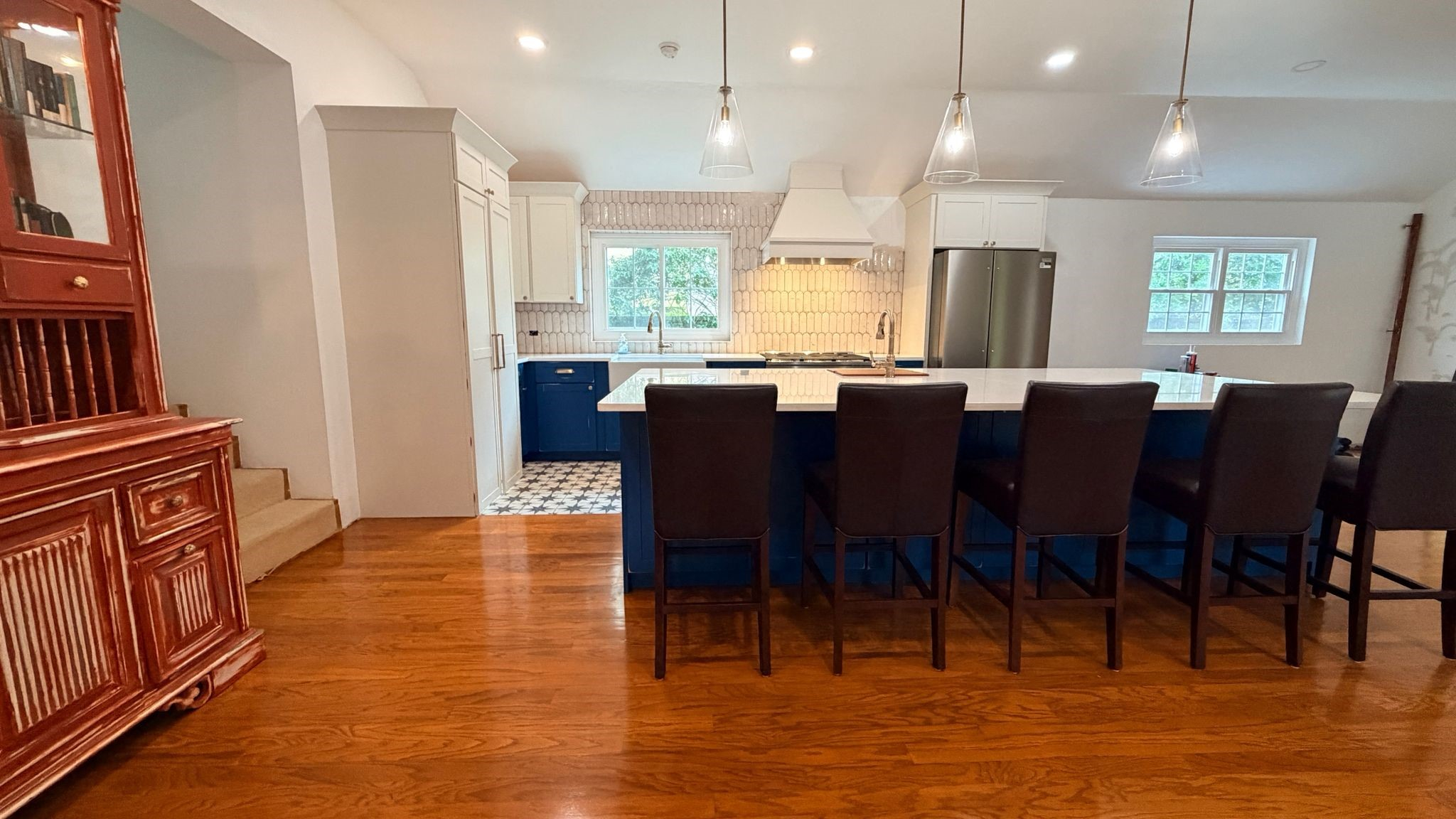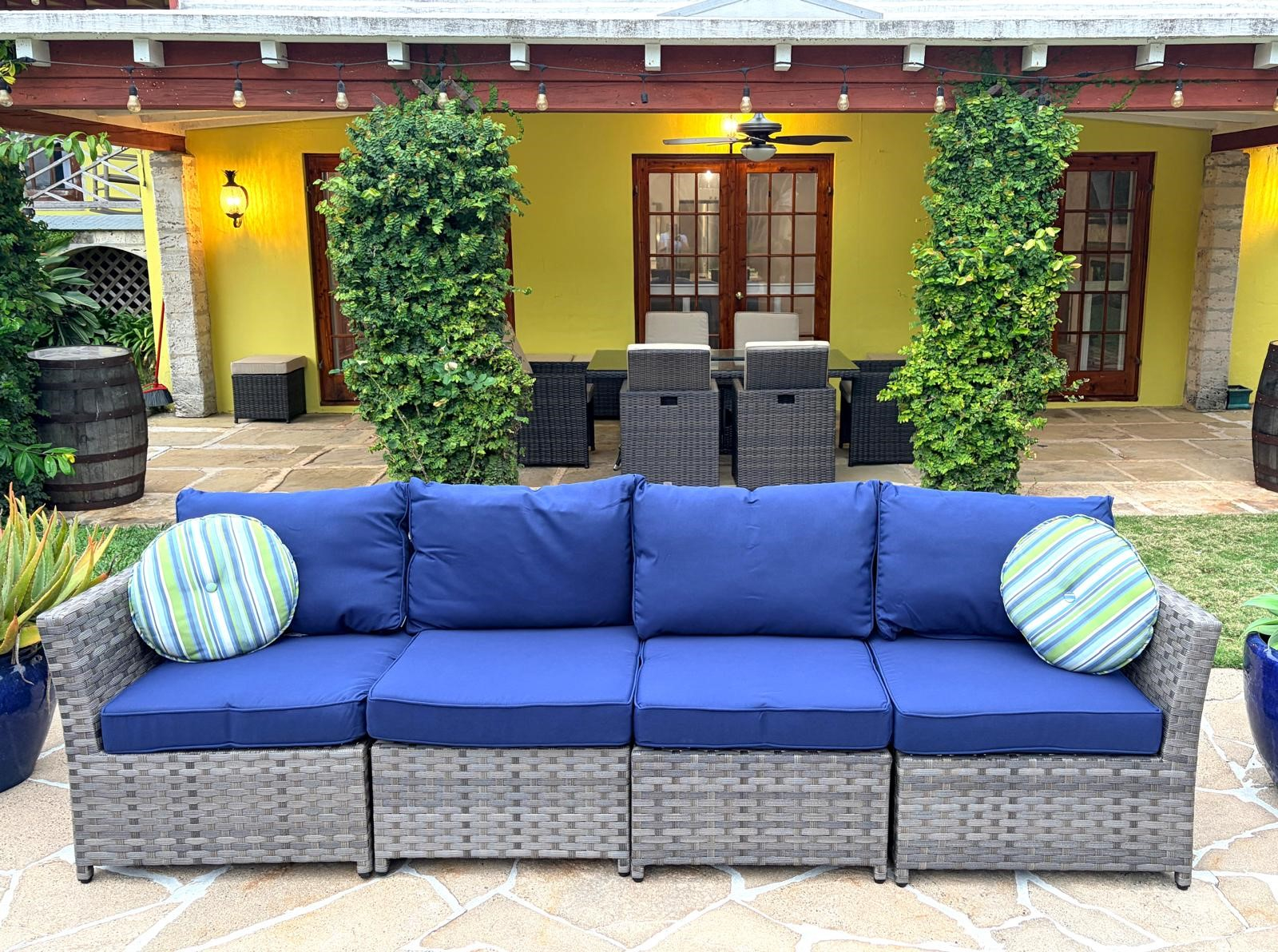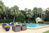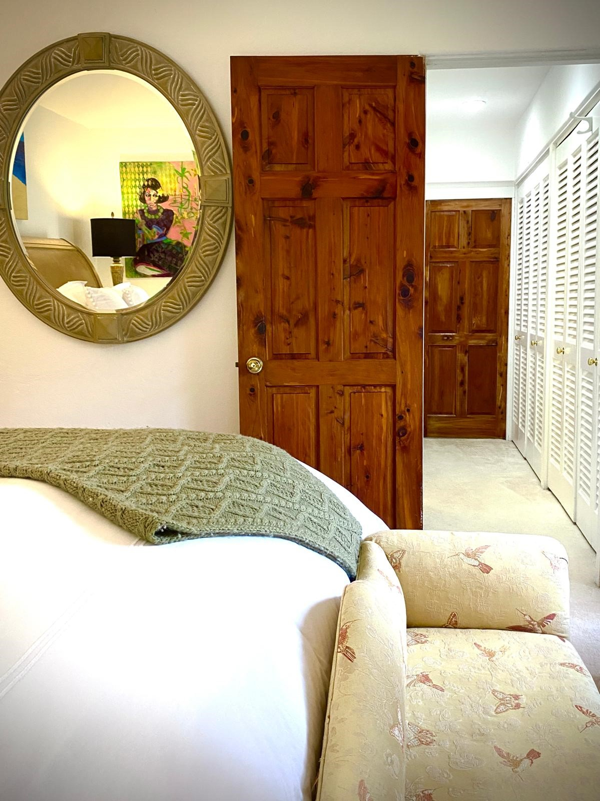 Backgammon is an impressive, centrally located Bermuda home whose stunning pool area and lush gardens create an immediate wow factor. While the beautifully landscaped outdoor spaces will tempt you to spend every moment poolside, the newly renovated interior is equally inviting and effortlessly draws you in. Modern, warm, and filled with intriguing artistic touches by the owner, this home truly feels like a “home away from home.” The entry hall opens into a welcoming living area where guests can relax, curl up with a good book, or enjoy the grand piano—which, intriguingly, can also play itself. From here, doors lead to a balcony and steps down to the pool and garden level, making indoor-outdoor living seamless. Whether you’re planning an evening of entertaining or simply enjoying the sound of children playing in the garden, this level invites you to slow down and savor the setting. There is even a delightful secret garden waiting to be discovered. Just steps down from the living room is the brand-new designer kitchen, completed in 2026 by renowned architects. Featuring a center island and every modern convenience, this colourful space is ideal for family gatherings. With a large-screen TV and fireplace, as well as a family-style dining space around the island. From the kitchen a wall of French doors opens to a covered patio—perfect for outdoor conversations, cocktails, and relaxed evenings. This level also includes a bathroom with shower and a utility room with washer and dryer. Backgammon comfortably accommodates family and friends with five bedrooms. From the entrance level, steps lead down to two bedrooms: The primary suite features a king bed, TV, en-suite bath, and direct access to the garden and pool—ideal for a midnight swim. A second king bedroom, also en-suite, opens onto the lush gardens through French doors. On the entrance level, you’ll find a third king bedroom with TV and en-suite bath. Nearby are the fourth and fifth bedrooms, each with queen beds, sharing a Jack-and-Jill bathroom. The home is within easy walking distance of the Darrell’s Wharf ferry stop, offering direct access to Hamilton, as well as the Middle Road bus stops being nearby. The renowned Four Ways Inn restaurant is also within walking distance. This exceptional home is newly offered for summer 2026,an ideal opportunity to create lasting memories of swimming, dining, music, and entertaining with friends and family. Only 5 minutes by cab to Elbow Beach and Coral Beach Club. Guests will enjoy complete privacy and a peaceful setting. While there is a separate apartment on the property with its own private walkway and parking that may be occupied by the owner, guest areas remain entirely private. For bookings, please contact [email protected].