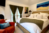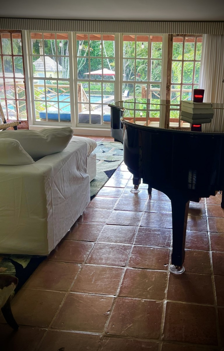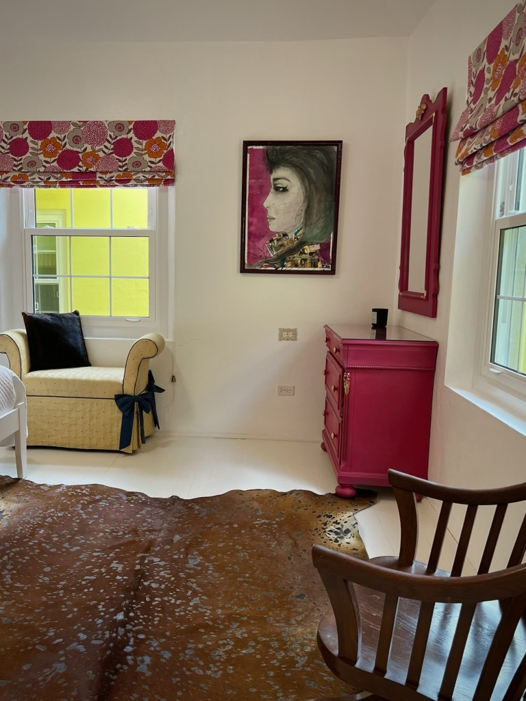 The stunning pool area and the lush gardens of Backgammon certainly add to the WoW factor of this impressive centrally located home. Even though you will wish to spend plenty of time outside in the lovely pool and the wonderful gardens, the newly renovated accommodation within the house will certainly draw you in. Modern and welcoming with lots of intersting touches added by the artist owner, here you will find your home away from home for your Bermuda vacation stay. The entry hall invites you into the living area to relax and maybe enjoy playing the grand piano (but actually it can also play by itself!) or just sit quietly and read a novel One can access the stunning pool from the living area to the balcony and by way of a steps down to the pool and garden level. Take time to plan your entertaining on this level or enjoy hearing the children playing in the garden. There is a special secret garden to explore as well ! Our guests will be treated to a designer kitchen newly created in 2025 by well-known architects with a center island and absolutely everything a brand new kitchen has to offer. This room, steps down from the living room, will embrace family time with a sitting area with large screen TV and fireplace and family style dining - connecting to the covered patio through a wall of French doors - taking you to outside seating for conversation and cocktails. A bathroom with shower is on this same level and includes a utility room with washer and dryer. You will find plenty of room for family or close friends as the house has five bedrooms. From the entrance level take steps down to two bedrooms. The primary bedroom (king bed and TV) has access to the garden and pool for that midnight swim with en-suite bath. The second bedroom (king) with en-suite bath, also has access to the lush gardens through French doors. A third bedroom (king and TV) with en-suite bath is on the entrance level and close by are the fourth and fifth bedrooms who share a ‘Jack and Jill’ bath, both with queen beds. Backgammon is within easy walking distance of the Darrel’s Wharf ferry stop, which will take you directly into Hamilton or a short walk to Middle Road bus stops. The famous Four Ways Inn restaurant is also close by. You will have to wait until Christmas 2025 to to rent this lovely home. Or plan for your vacation for 2026. This could be a great opportunity for you to build memories of swimming, dining, music, and entertaining with friends and family. Backgammon will be entirely private and peaceful for Guests, however, there is an apartment with private walk way and parking area dedicated to the owner who might be in residence. Awaiting further photos but rest assured it will be fantastic !. Contact [email protected] for bookings.