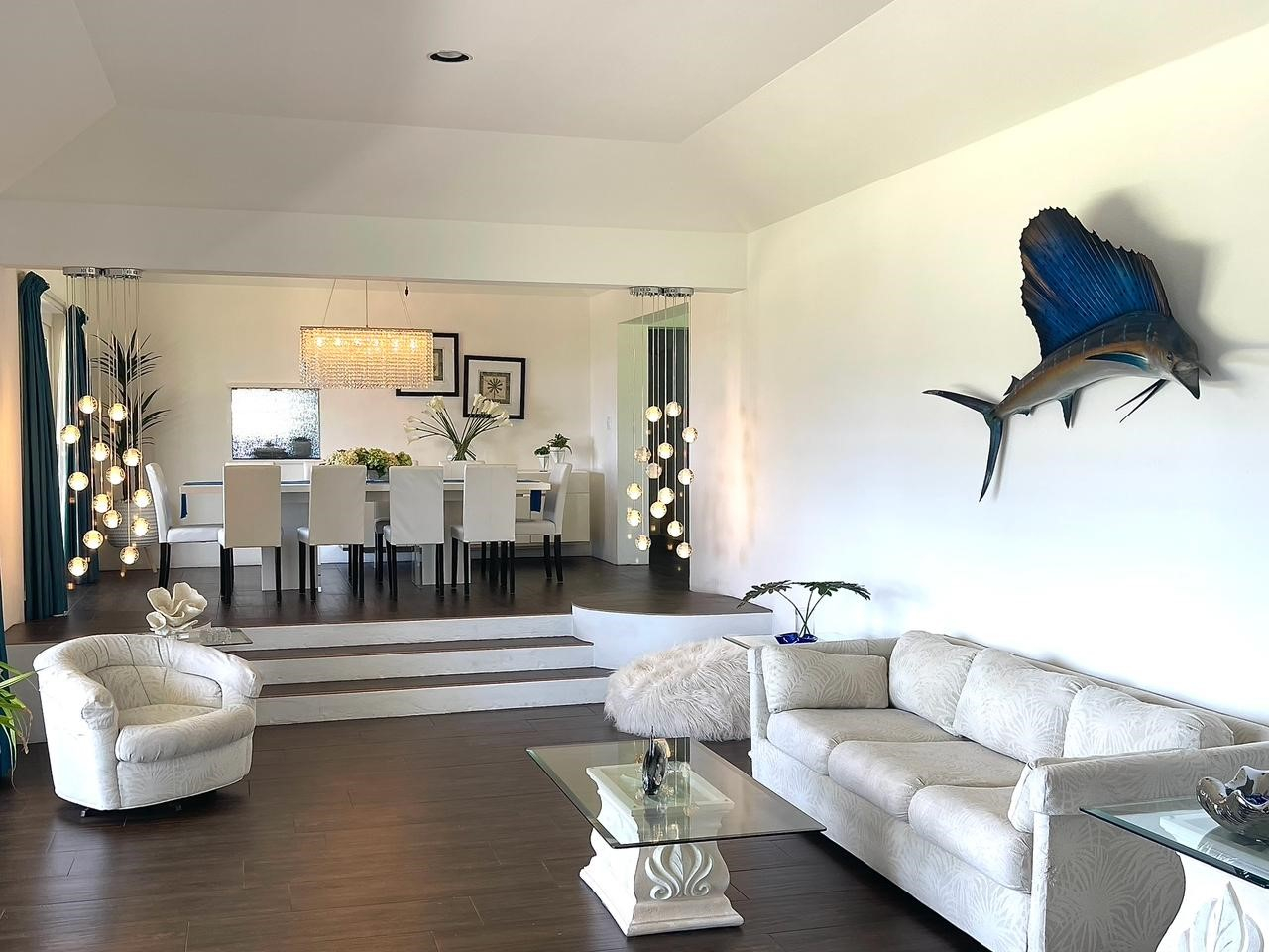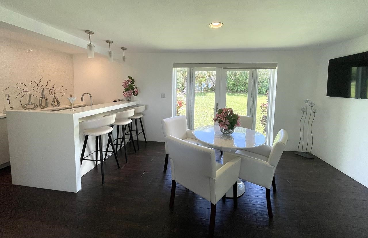 Enjoy amazing views over the South Shore from this impressive four-bedroom home. The wide porches are made for relaxing in this peaceful location in Southampton. Open plan living and dining is the style of Upper Crust and well designed to take advantage of the light and space this well presented home offers. A modern and spacious kitchen provides all the facilities you need to cook if you are not dining in Bermuda’s fine restaurants. For example, Henry VIII Pub, ‘Coconuts’ at the Reefs Hotel are close by and there is a restaurant also located at the famous Gibbs Hill Lighthouse – a short walk away. The extensive gardens to the back of the house provides guests with an ideal BBQ area and outside dining. There are 4 bedrooms to be discovered, all on one level. In the principle bedroom, there is a King Bed, with bathroom ensuite. Additionally, there is one Queen bedroom, one bedroom with a Full sized bed and the last 4th bedroom with two Twin beds, which all share a full bathroom. For your comfort, each bedroom has split AC units and ceiling fans, with additional split air-conditioning in the kitchen only. Not central air. Or you can just open the sliding glass doors in the living room, dining room, and family room and there is plenty of breeze year-round! Wireless internet is available and TV with cable is available in the kitchen, family room, and 2 of the bedrooms. All 4 TV’s have built-in DVD/CD players. Laundry facilities are available and there is also a new powder room near the kitchen. The closest swimming beach is the stunning Church Bay, a 20 minute walk - also you will not be far on public transport or a cab to Horseshoe Bay Beach. Conveniently, the closest moped and electric car rental company is Oleanders, across from the Reefs Hotel, an approximate 15 minute walk from the house. It is easy to catch a bus from the stops on the South Shore Road, going East or West. Contact [email protected] for bookings.